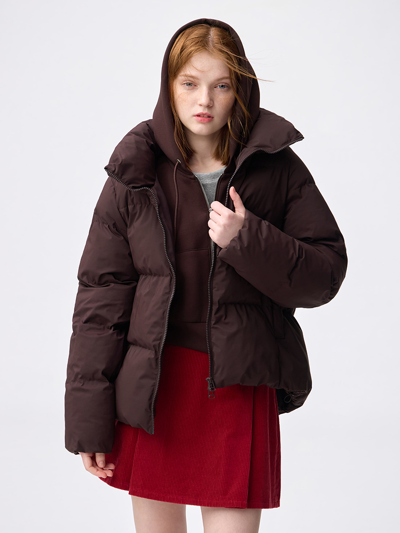 2025.11.1 4F カジュアルファッションジーユー 店舗情報はコチラ ウォームパデッドブルゾン ウォームパデッドとは中空糸中わたを使用した機能素材アイテムです。裾を絞ると丸みのあるシルエットで、後ろの着丈を長くすることで腰回りもあたたかく着用できます。ウォームパデッドブルゾン ¥4,990