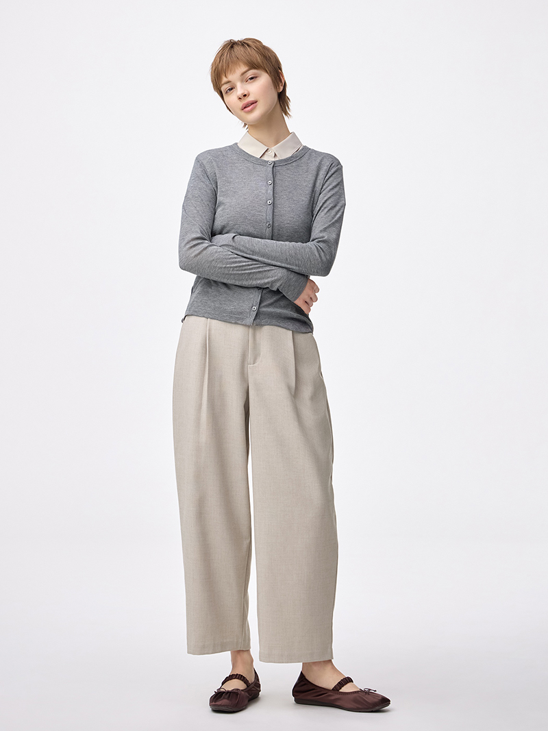 2026.4.1 4F カジュアルファッションジーユー 店舗情報はコチラ WソフトシアーカーディガンQ 天然素材のようなふくらみがあることでソフトな着心地がポイントのアイテムです。今期トレンドのレイヤードスタイルや1枚着としても活用でき、使いやすいデザインです。 WソフトシアーカーディガンQ ¥1,490