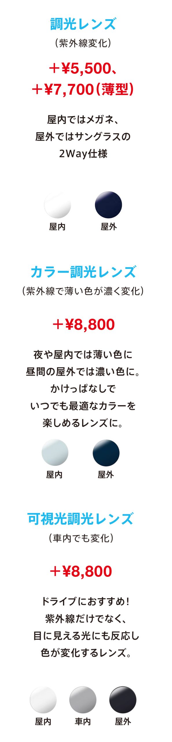 2025.12.1 2F めがね・サングラスゾフ 店舗情報はコチラ 眼鏡にもサングラスにもなる【調光レンズ】 紫外線で色の濃度が変わる!旅行やアウトドアに最適! ※在庫が無い場合、お渡しまでにお日にちをいただきます。